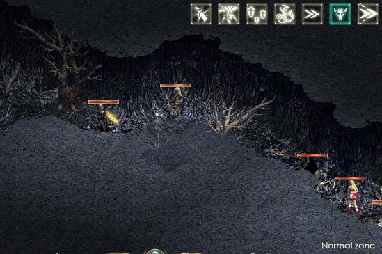 要塞とオーム村とを繋ぐ道は,かなり細長い。当然,モンスターも出現するので,多人数のパーティだと狭くて戦いにくい |