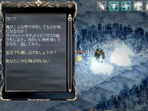 | 水晶の洞窟の3FにいるNPC,カリフは,2種類のクエストでキーとなるキャラクター。会うこと自体は容易だが…… |