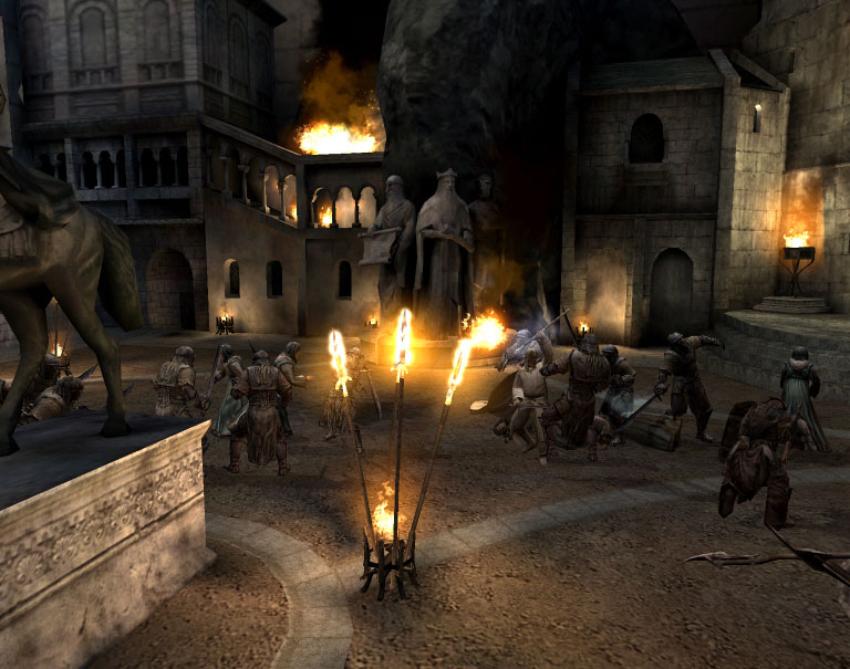 E3 2003では,ギムリの南門とガンダルフのミナス・ティリスのマップを公開しました。その後,ガンダルフのミナス・ティリスのコートヤード,アラゴルンの死者の道,そしてホビットのキリス・ウンゴルを公開しています。