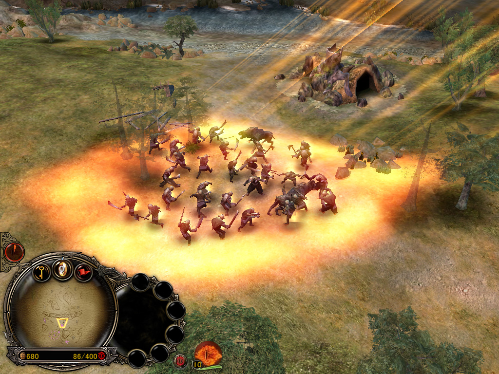 「サウロンの目」は,使用中は一時的な英雄扱いで,自由に移動可能。照らした場所にいる味方のオークに攻撃力+150%,防御力+50%,経験値+200%のボーナスを与える。敵のステルスユニットを発見することもできる