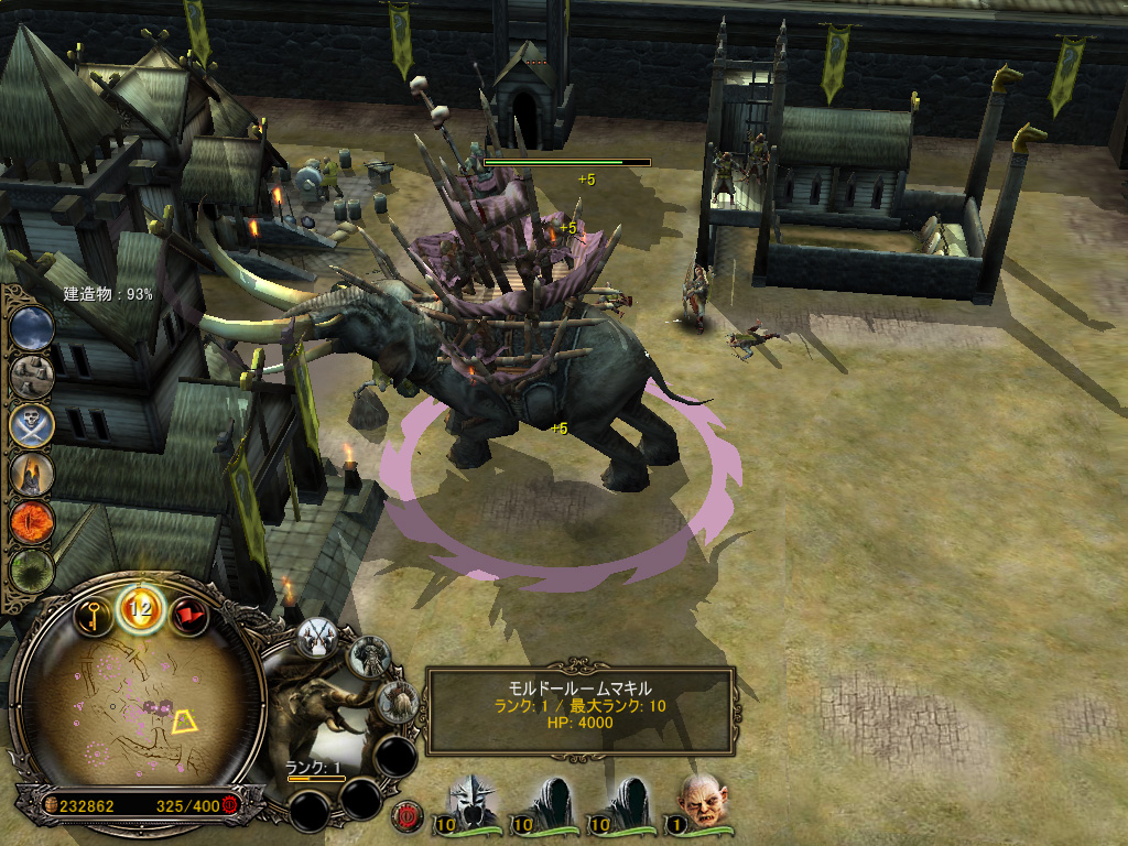 モルドールにはコストなしで生産できるユニット「オーク戦士」がいるので,序盤はこれをフルに生かして戦っていこう。
