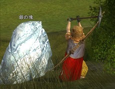 採掘は,鉱脈が大地から露出した部分を削り,鉱石を掘り出すもの。掘り出した鉱石は,さらに磨いて金属(インゴット)に加工する。このインゴットは皮以上に,宝飾,鍛冶,木工,鋳造と必要になる機会が多い。金,銀,銅などの貴金属は宝飾に,スズを混ぜた合金など強固な金属は武器/防具に,それぞれ利用する。ちなみに,鉱石を掘り出すとき,たまに宝飾で使う宝石の原石や,研究で使う染料が手に入ることも。