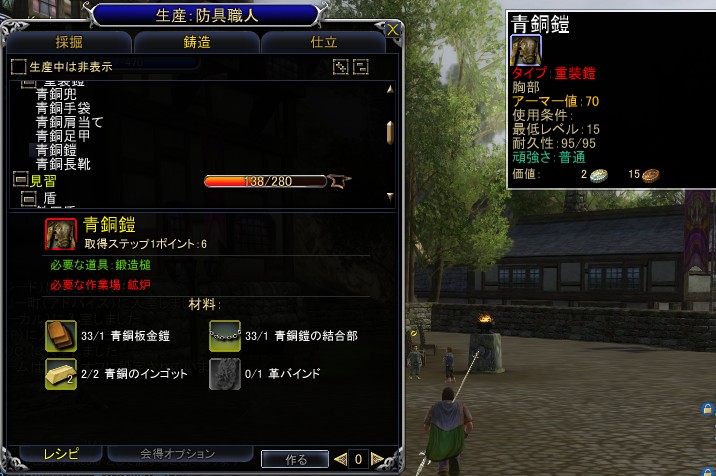 | 鋳造では,重装防具のほかに生産の道具類を作るレシピもある |