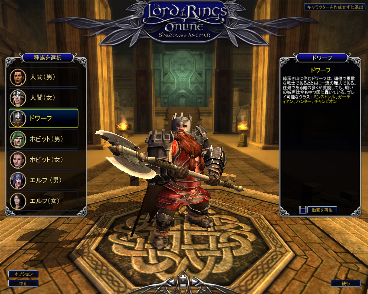 種族としては人間/ドワーフ/ホビット/エルフの4種類が,職業としてはガーディアン/キャプテン/チャンピオン/ハンター/バーグラー/ミンストレル/ロアマスターの7種類がそれぞれ用意されている。