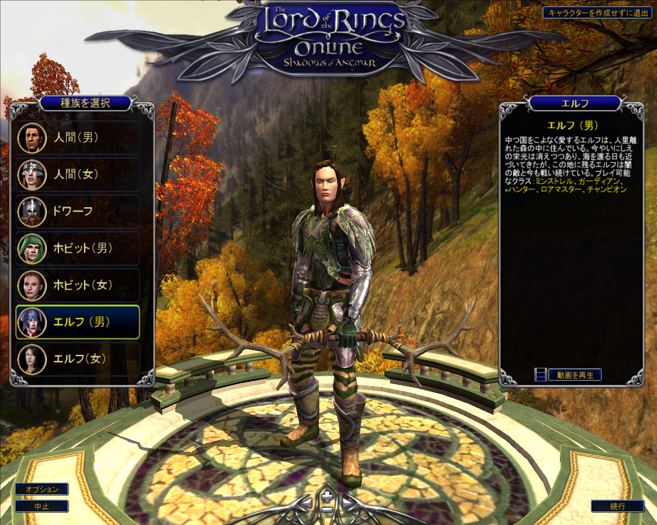 キャラクターメイキングが終了したら,キャラ選択画面で「中つ国に入る」ボタンをクリックし,ゲームをスタートしよう。初めてゲームに接続した場合,キャラクターは初心者用のチュートリアルエリアに転送され,ゲームの操作方法を学びながら,ゲーム本編へとつながるクエスト群を楽しむことになる。