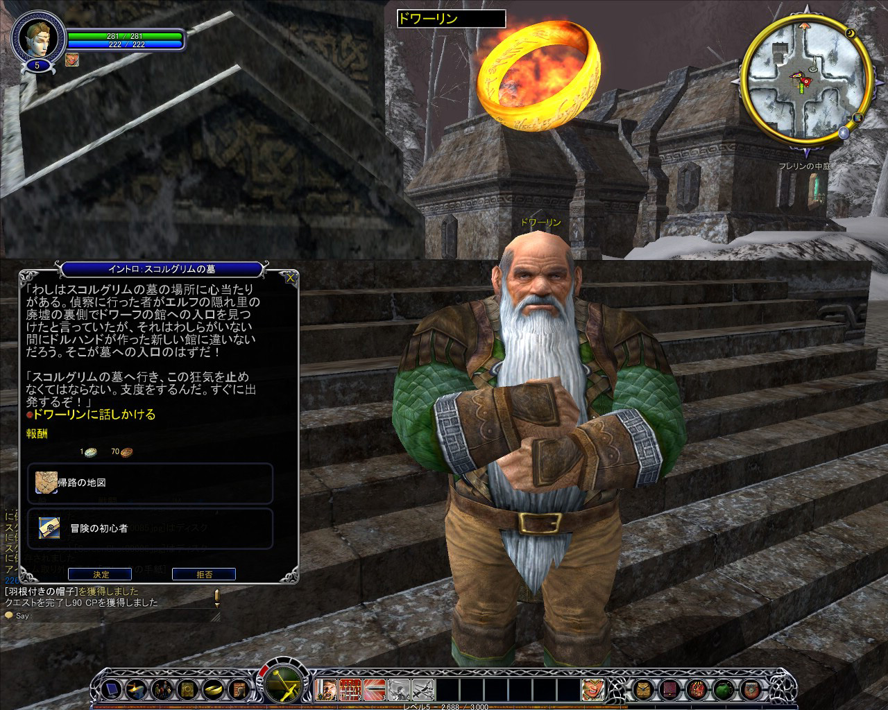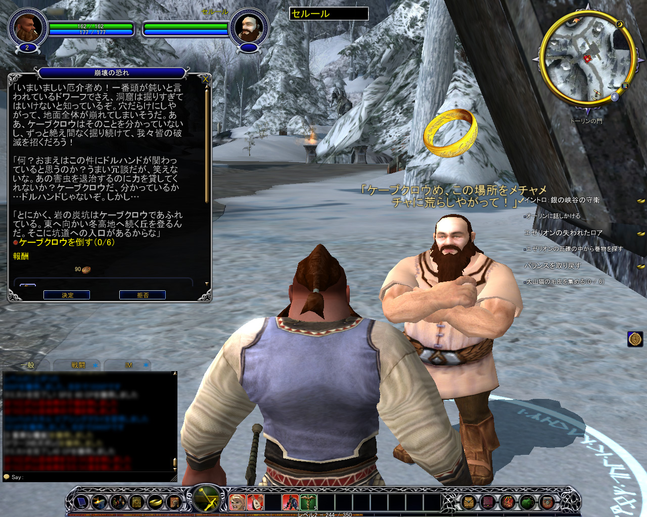 トーリンの門は,ドワーフまたはエルフを選択したプレイヤーが訪れる初心者エリアだ。高山に囲まれた盆地のようになっており,地表のほとんどが雪と氷に覆われた白一色の寒々しい世界だ。