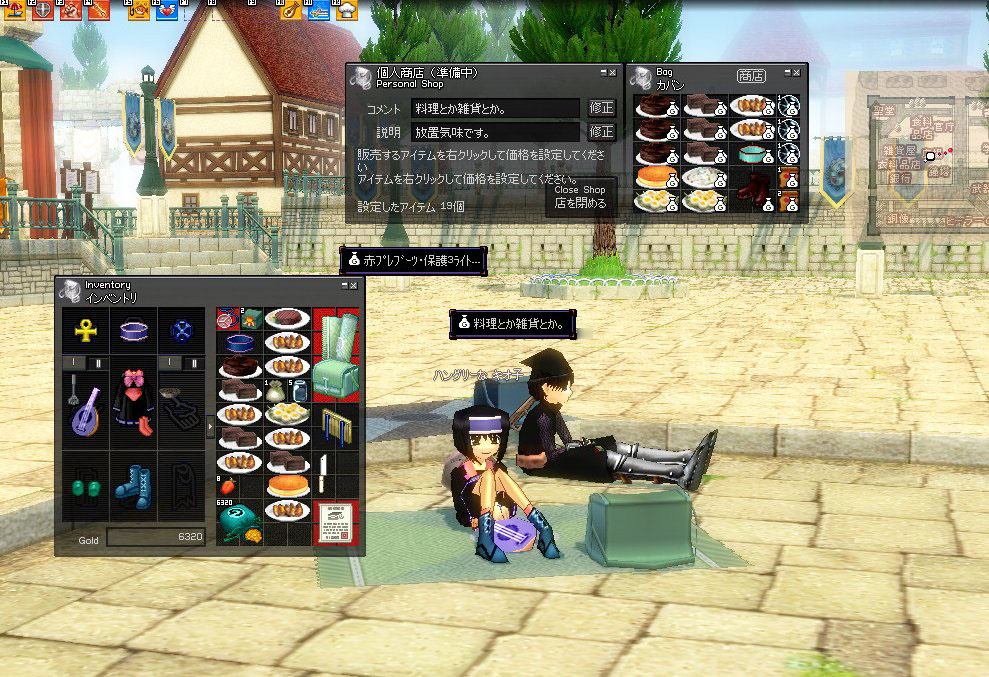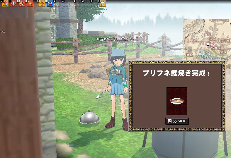 料理をするには両手に道具を持った状態でスキルを発動させよう。料理用のウィンドウが立ち上がるので,調理方法を選択し,材料を入れて,それぞれの材料の量(割合)を調節すれば料理ができる。このときの材料の割合で料理の星の数が決まるのだが,実は「レッツトライ! 料理スキル」の本に書いてあるイチゴ牛乳のレシピ通りの割合で料理をしても,星五つのイチゴ牛乳は完成しない。あとは経験と勘でどうにかするか,ほかに料理をやっている人に訊くなどしてみよう。