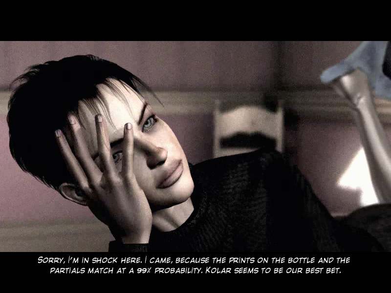 | 現代編の主人公であるビクトリア。大人しそうな見かけと違い,なかなかタフな捜査官だ。上司に向かっても言いたいことはズケズケと言う。実家はお金持ちで,画廊を経営するリチャードというボーイフレンドがいる |