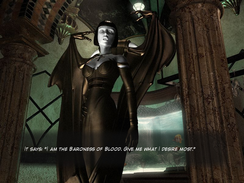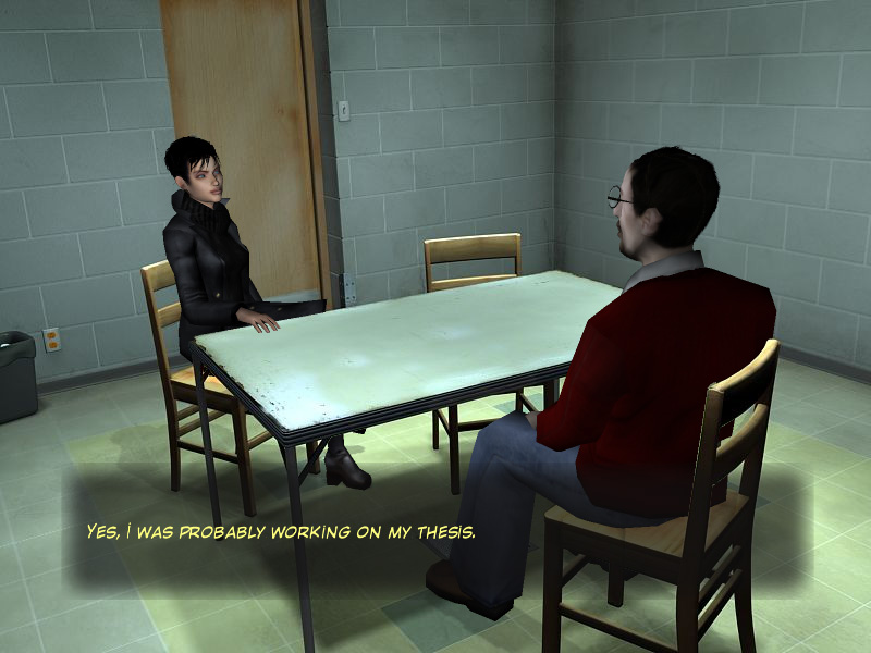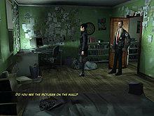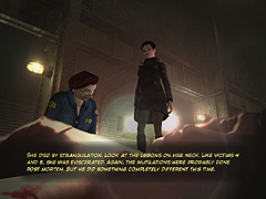 ゲームの進み方もごくオーソドックスで,「必要なものは拾う」「話せる人とは話す」とアドベンチャーの基本をこなしていれば,物語はほぼ自動的に進行していく。もっとも,「次はどこへ行くべきか」については会話中にヒントがあるし,手に入る大量の文書の中にも事件の鍵となる情報があり,それがまたナゾナゾか判じ物みたいな書き方なので,ゲームを楽しむには,ちょっと英語力が求められる。アメリカで学生をやっている私は英語に達者なはずだが,非常に苦労した。