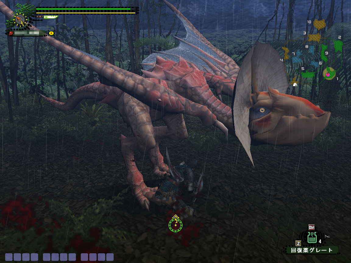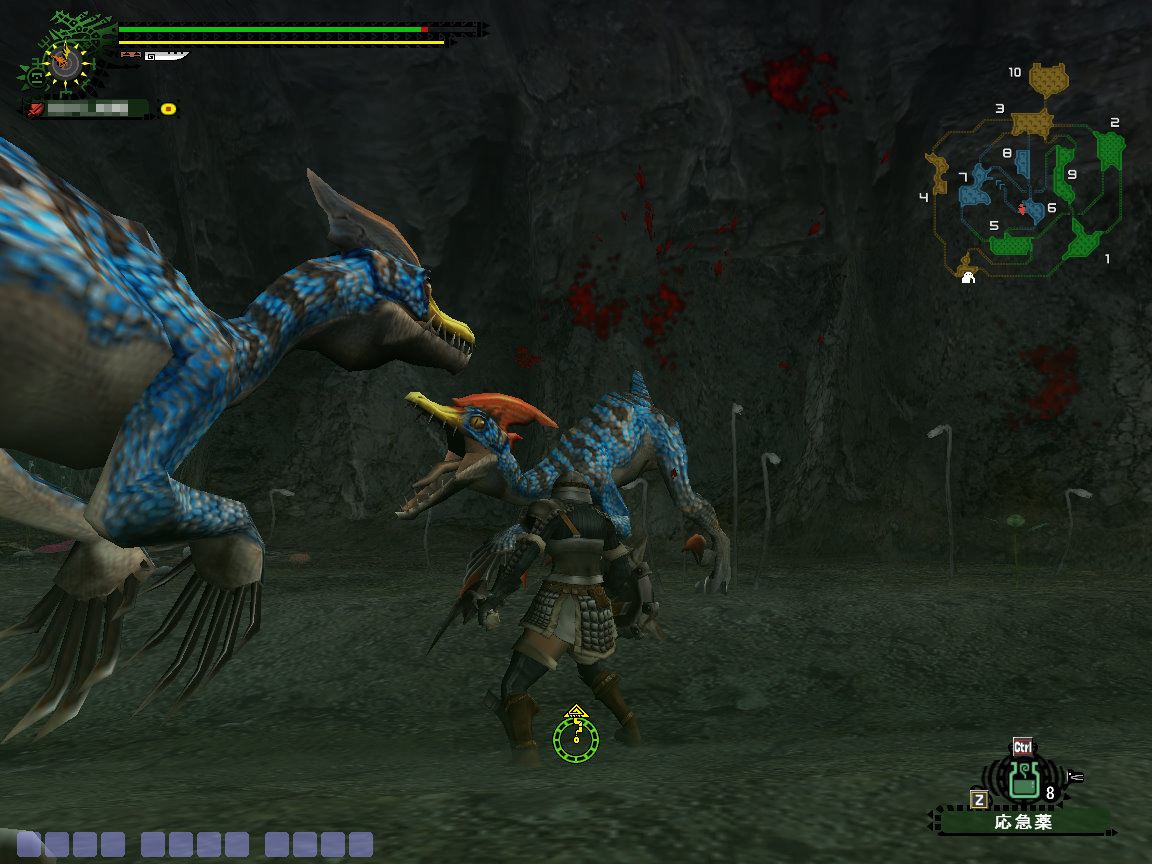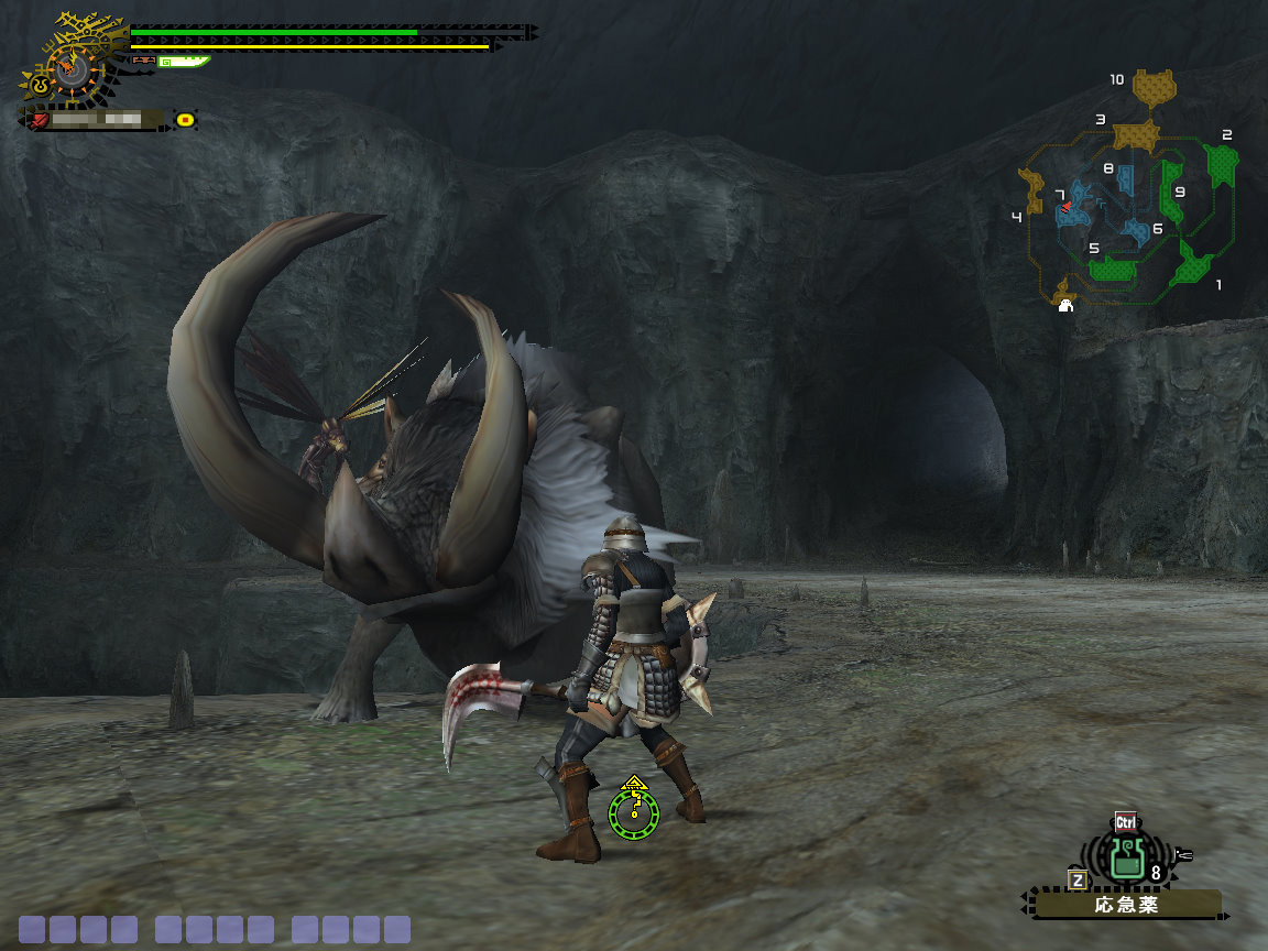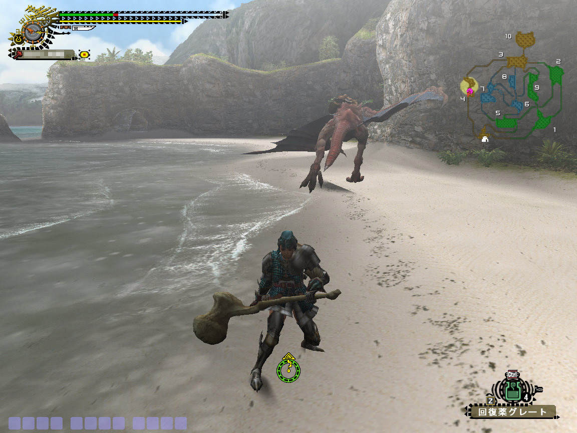 しかし,知識もテクニックもない新米ハンターがクエストに出ても,大型モンスターになぶり殺しにされかねない。また,ベテランハンターに同行してもらった場合には,何が起きているのか把握する前に大型モンスターが仕留められてしまって,訳も分からぬままにターゲット達成,クエストクリアというケースに陥りがちだ。