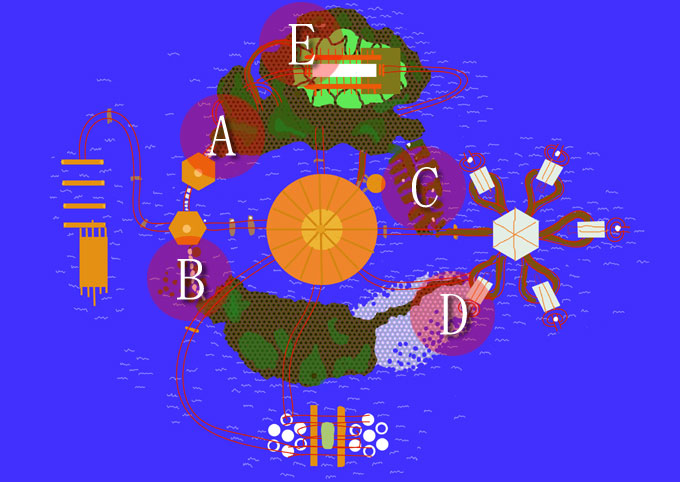 下のA〜Eをクリックすると,その場所に関する情報が表示されます。