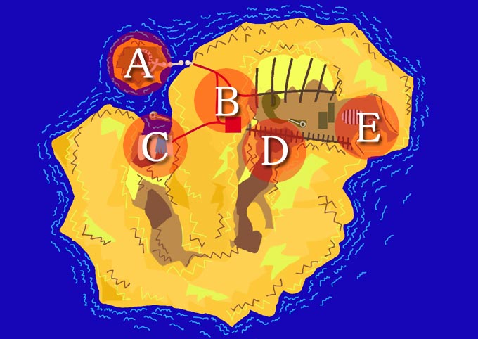 下のA〜Eをクリックすると,その場所に関する情報が表示されます。