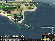 座礁してしまったら…… マップによっては,戦域内に島などの陸地が配されている。この陸地に近づきすぎてしまうと船は座礁する。座礁状態でさらに前進させようとすると,船にはどんどんダメージが蓄積されていってしまう。もちろん動けなければ敵のよい的になってしまうので,速やかに脱出したい。