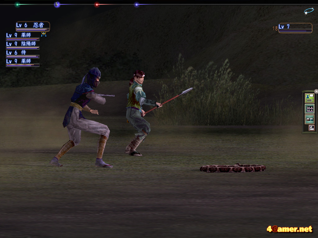 しばらくして追加メンバーが合流。待望の侍もいる。これでバランスの良い徒党となったため,より強い"毒蛇"を狩ることに。この頃にはちょっと余裕が出て,ほかの職業を観察できるようになってきた。