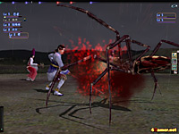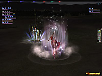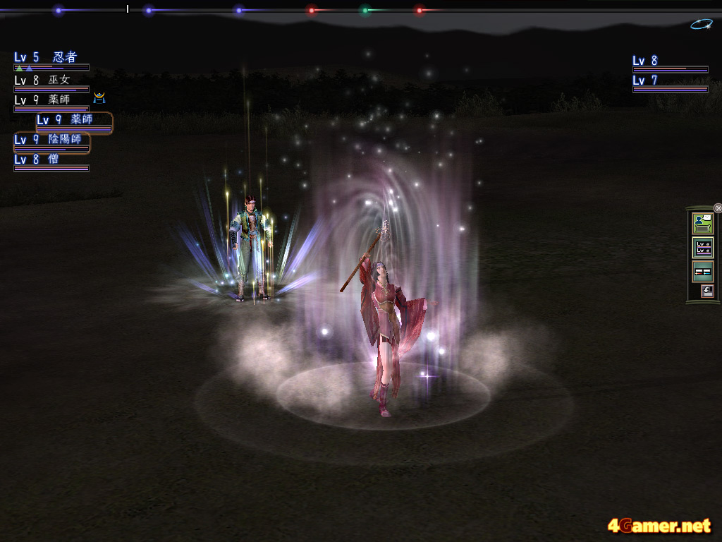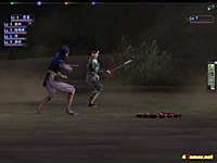 見ればいわゆる前衛職は自分一人で,さらにほかの徒党メンバーは若干こちらよりもレベルが高いようだ。とはいえ,僧&薬師の人たちがいろいろな術を連続でかけてくれるおかげで,なんとか死なずに踏みとどまっていられる。初めての徒党プレイであるうえになんだかお世話になりっぱなしで不必要に緊張し,変なタイミングでチャットを放つ恥ずかしい忍者がいること以外,狩りは順調だった。