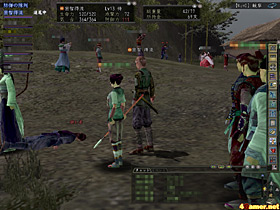 さらに狩りを続けたところで,党員の武器防具が消耗してきた。党内に修理のできる鍛冶屋がいなかったので,折を見てそれぞれが修理に走っていく。一度残留党員が数人になったときがあり,ちょっと戦闘はつらそうだということで,狩り場から離れ,休憩を取ることになった。