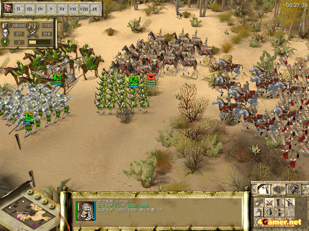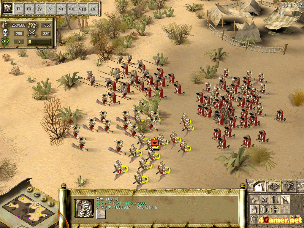 またエジプトのいくつかのユニットが,「信仰」というアビリティを備えている点にも注目したい。「信仰」を使用すると,ユニットは瞑想状態に入り,スタミナを急激に回復できるのだ。スタミナを消費する特殊なアビリティを併用していないところは残念だが,素早く乱戦状態に持ち込むため,いつでも走り回れるだけのスタミナを温存しておきたい。