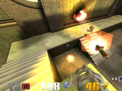 2000年のQuake III Arenaでは,さらに一転して「戦士達がアリーナで戦う」という,ストーリーはほぼ皆無(取って付けたようなストーリーはあったが)のネット対戦に特化したゲームに作り替えられた。Quake III Arenaは,当時としては美麗な3Dグラフィックと,スピード感溢れるネット対戦が特徴だ。Quake IIとプレイ感が異なるため,当初は酷評するQuakeプレイヤーもいたのだが,結果としてQuake III Arenaが長年にわたり時代を制することになる。とにかくネット対戦ゲームとして,完成度の高さが際立ったゲームといっていい。