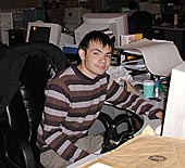 | Elixir Studiosのメンバーは50人ほどで,Republicのほかにも秘密のプロジェクトが進行しているとのこと。ハサビス氏のデスクは,ピーター・モリニュー氏のようにほかのメンバーに混じって置かれている。開発理念などは,師であるモリニュー氏のそれを継承しているようだ |
