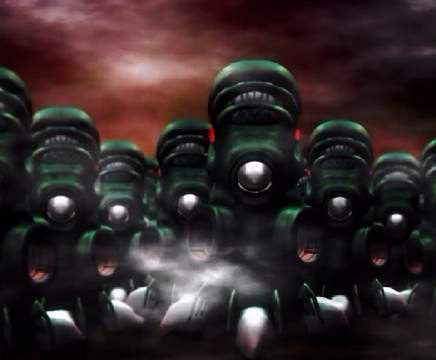 美しい女性の姿,不気味だがどこかしら愛嬌のある異形の者達,防護服のようなものを身にまとって何かを捜しているかのような一団,稲光を見せる黒い雲とそこから舞い落ちる光る物体,そしてそれに乗って姿を現す人に似た形の何者か,心臓のような鼓動を見せる青い物体,巨大な蛇のようなもの,巨大な試験管のようなものに封じ込められた誰か,黄金色に輝く騎士(?),真っ赤な空を見つめる男女の姿……。