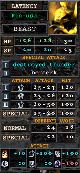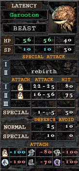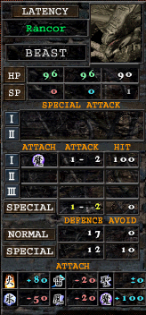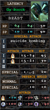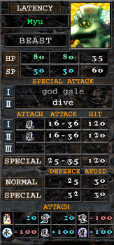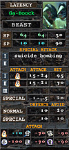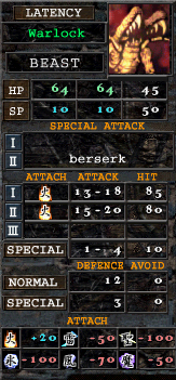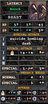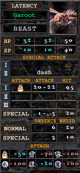 BEASTというカテゴリ名が示すとおり,動物的な容姿をした種族。かみつきなどの攻撃方法が多く,その攻撃属性は火であることが多い。よって,火を苦手とするMARXは得意な相手ということになる。ALIENも火を苦手としているが,ALIENはBEASTが苦手とする氷属性の攻撃を行うので,お互い激しい消耗戦になることだろう。