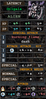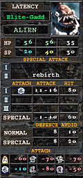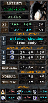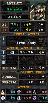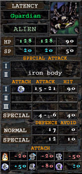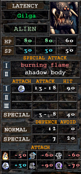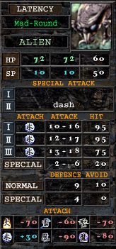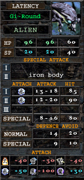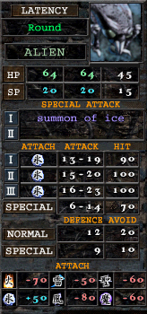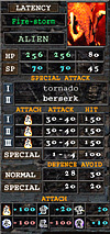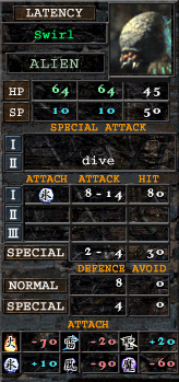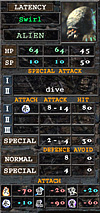 ALIENは独特な容姿をしており,そのほとんどは氷属性による攻撃を行う。防御力に不安はあるが,特殊なスキルを生かして戦えば勝機はあるだろう。序盤でSwirlを鍛え,Light-Stormを手に入れると,ゲームはかなり楽になる。