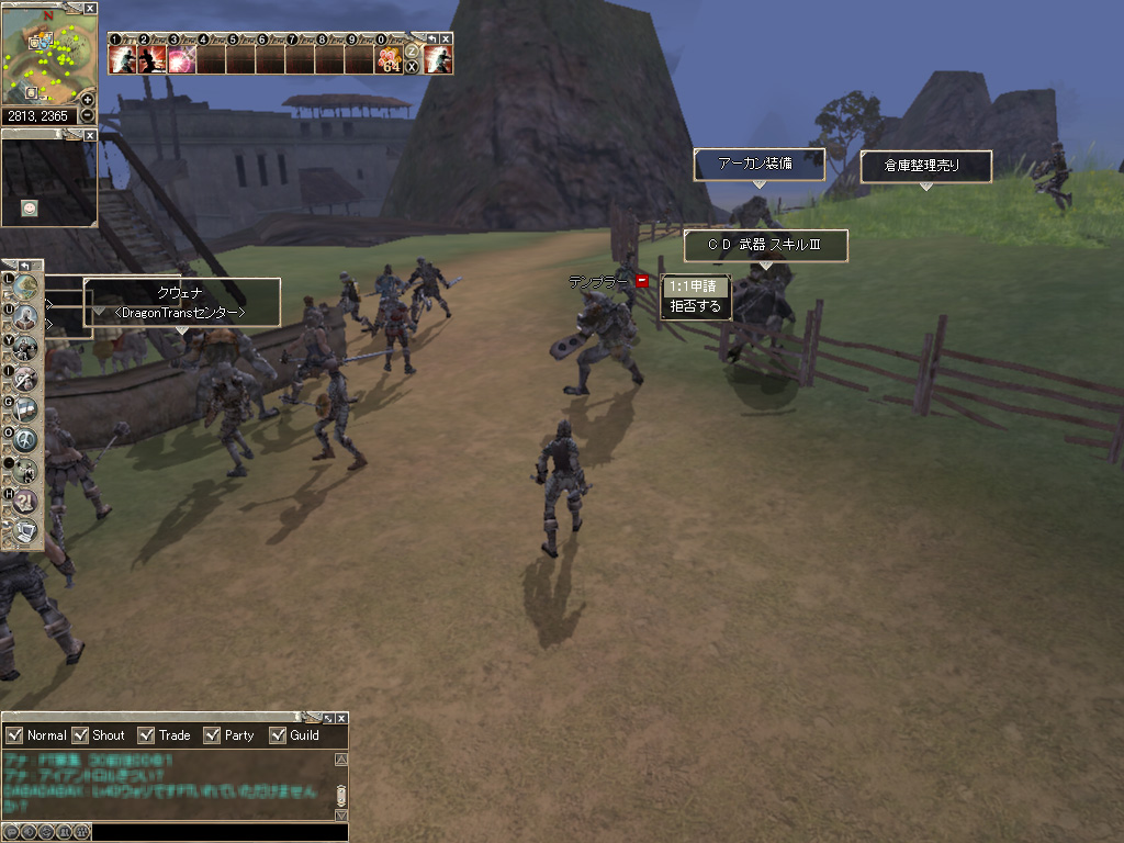 街中だろうがどこでも行えるのが,PvP申請。他種族だと名前も分からないし会話もできないが,Ctrl+左クリックで相手をターゲットすれば,申請を行える |