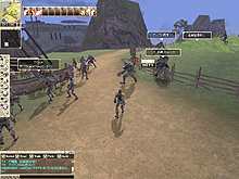 さらに,キャラクターが強くなってくれば,よりエキサイティングなフィールドへ突入することもできる。その代表的なフィールドが,"カーナボン"だ。カーナボンでは敵対種族との戦闘や、宣戦布告/承諾によるギルド間の戦闘がメインとなっており,一歩踏み込めば"狩るか狩られるか"の緊迫感溢れるプレイが楽しめる。また,プレイヤーキャラクターだけではなく強力なMobも棲息しているので,中途半端な戦力で足を踏み入れれば,"死は身近な友"となる。