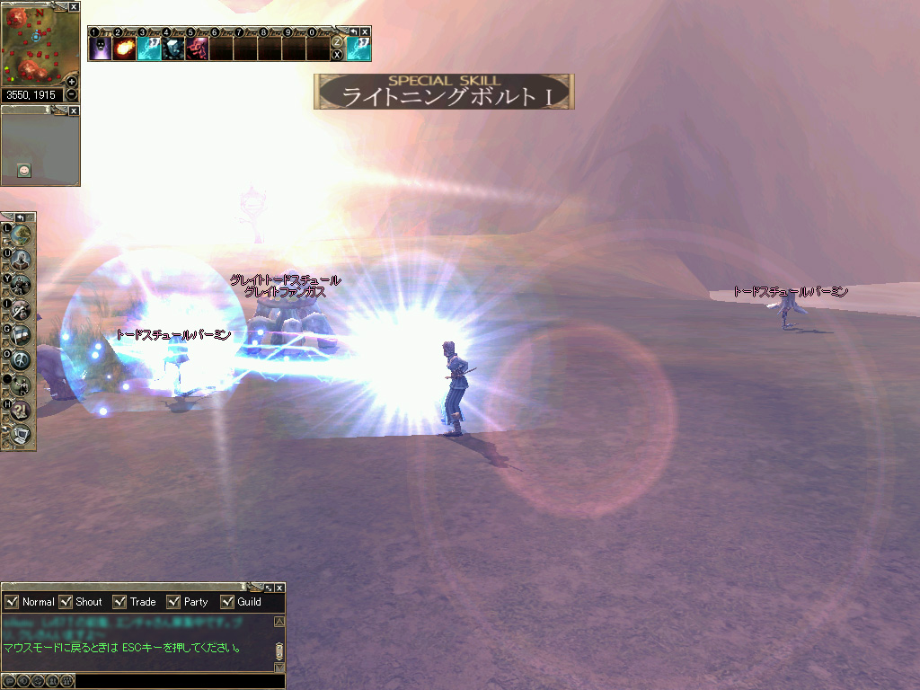 ライトニングボルトは術者からMobまで閃光が届く派手なエフェクト。いかにも魔法を使ってますといった感じを演出する |