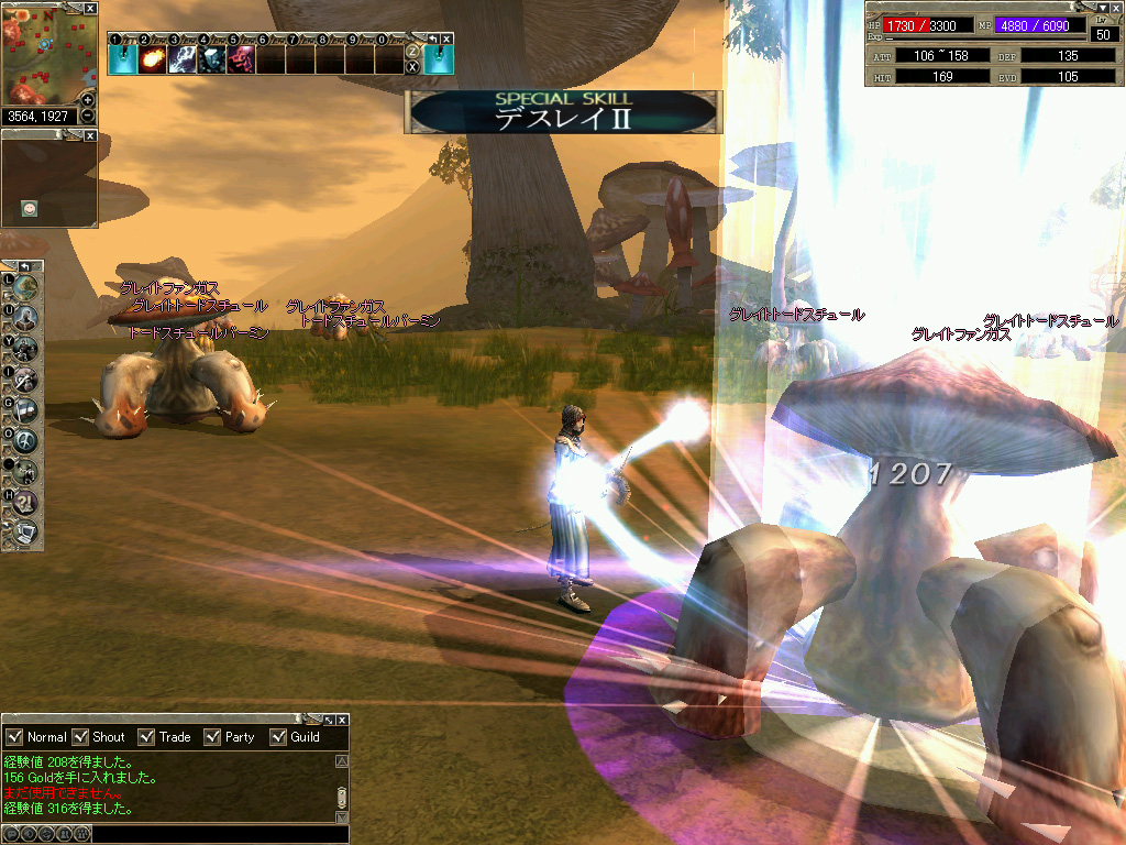 RYLPart2では,ある程度レベルが上がるまではPvE(いわゆるMob狩り)が基本のプレイスタイルになる。もちろん,この間にもPvPは可能だが,神の大地が基本的に中立地帯であるため,ギルドに属してギルド間で宣戦布告するか,パーティや個人間でPvPを申請/承諾するかしないと,直接対決はできない。お互いの意志が尊重される点については,初心者にとっては嬉しい仕様である。