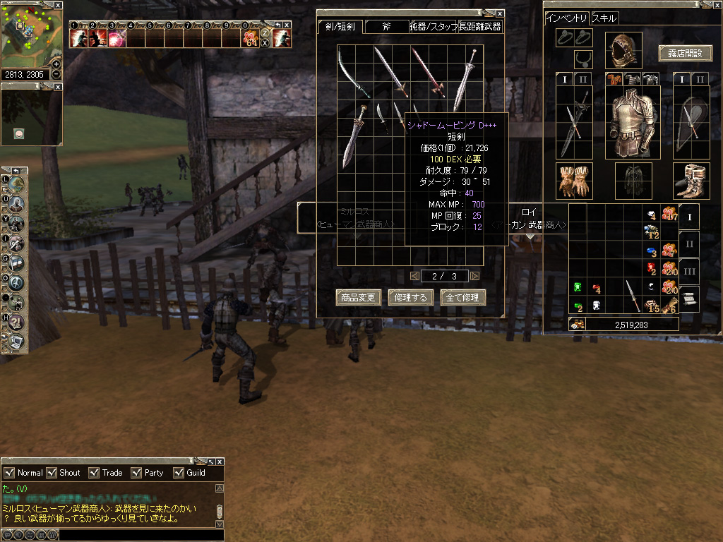 ではゲーム開始直後は何をすればいいのか? そのあたりは一般的なMMORPGと大差ない。Mob(モンスター)を倒すことで経験値やお金を得て,キャラクターを育てていけばいいのだ。キャラクターがレベル10になれば上位クラスへ転職できるので,まずはクエストを受けつつMobを狩り,レベル10を目指すといいだろう。