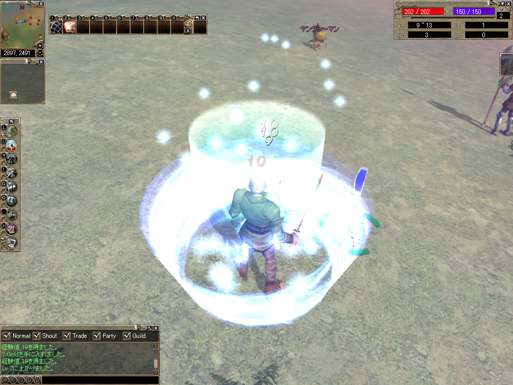 さて,ゲーム開始直後の狩場選びでまず知っておきたいのは,最も弱いモンスターはヤングシーマン,その次に弱いのがシーマンビレッジャーだということ。マップを見てもらえば,こいつらが街の北西と北東に棲息しているのがわかるだろう。スタート地点から最も近いのが北東の海岸線にある狩場。北西の狩場は街の裏側に当たり,崖を飛び降りたりすれば直接行くことができるものの,戻ってくるのがやや面倒なので,まずは北東の狩場で経験値稼ぎをするのがいいだろう。
