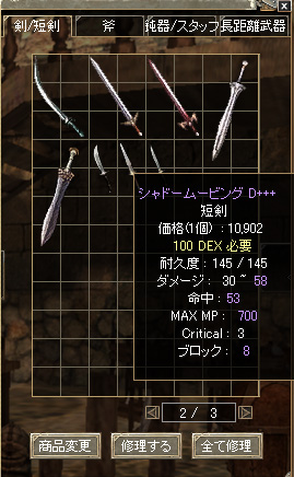 武器や防具を購入するときは,よりよいものがないか,"商品変更"ボタン(もしくはRキー)を押して,ラインナップを更新してみよう |