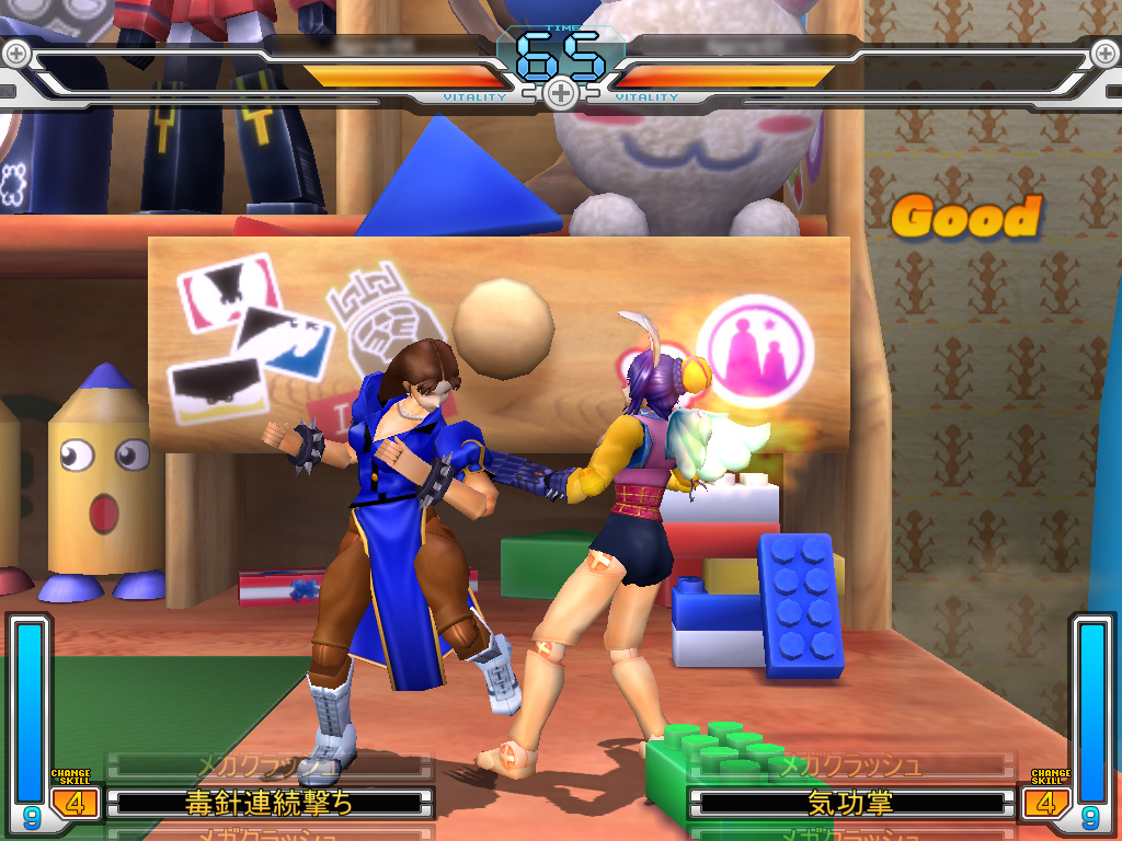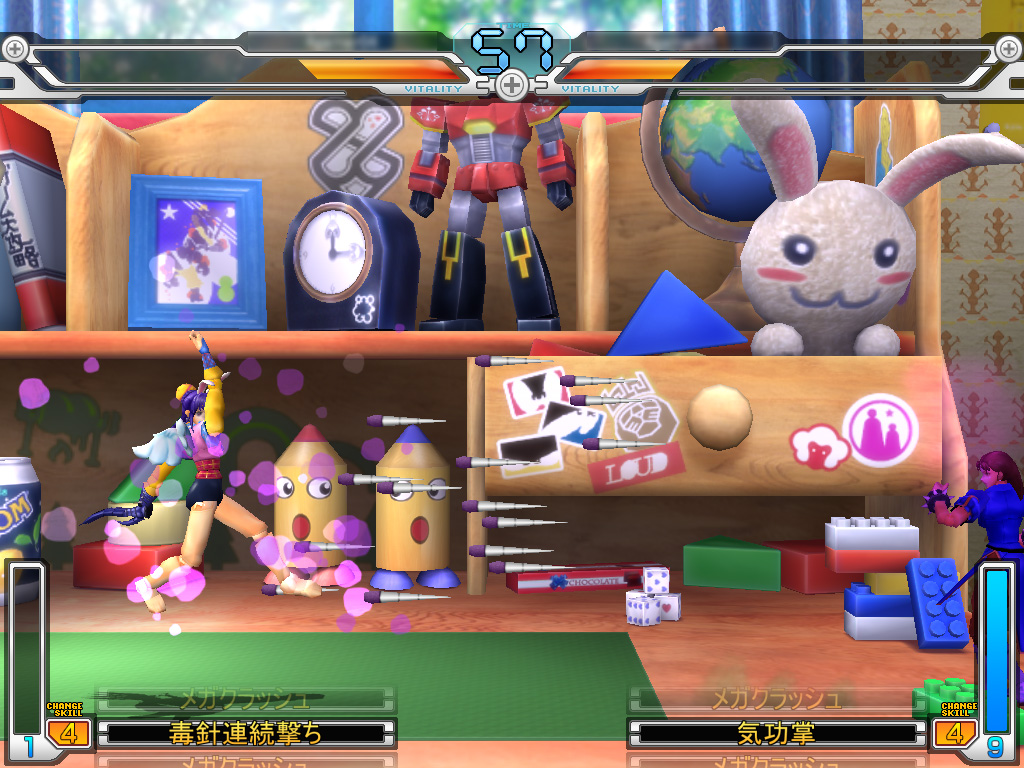 従来の対戦格闘ゲームのように,複雑なコマンドをシビアなタイミングで入力する必要はなく,対戦相手に接近しテンポよく右左と交互にクリックしているだけでもコンボが繋がり,派手なエフェクトの付いた必殺技が使えるので,初めてプレイする人であっても手軽に爽快感が味わえるだろう。