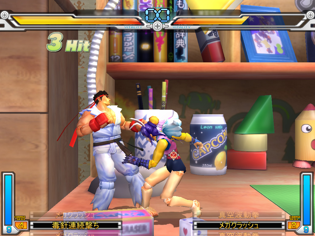 なお,それに伴い外見もリュウのごつい腕に春麗のムチムチの脚といったような組み合わせになる。外見を優先するか,必殺技やスーパーコンボなどを揃えるか,それとも何とかして両立を目指してみるか,プレイヤー各自の好みと創意工夫が問われるところだ。