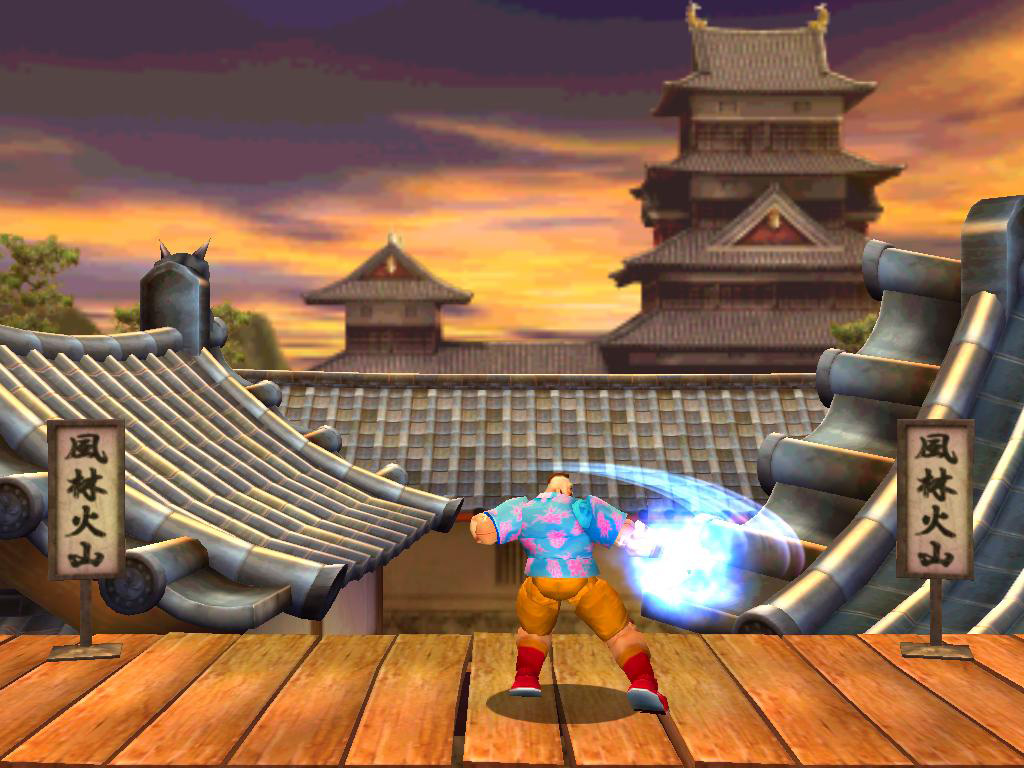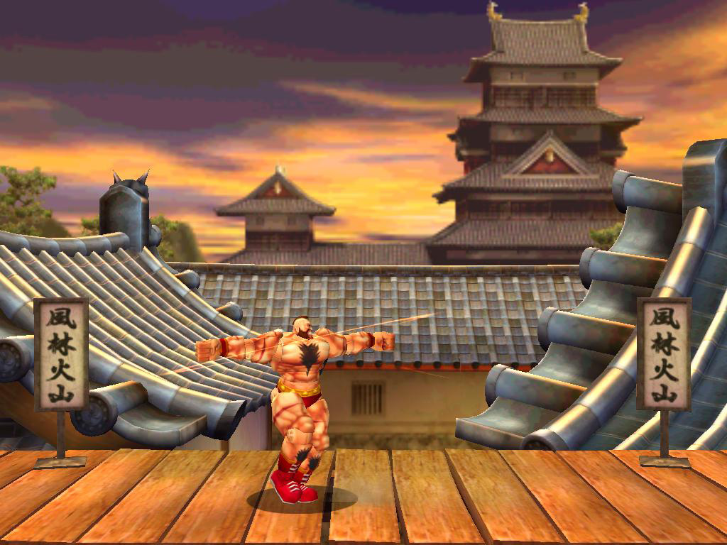 赤きサイクロンの二つ名で呼ばれるプロレスラーにして,ロシアの英雄的存在。ストリートファイターIIで登場した人気キャラクターで,本作でも投げ技を使う。また本作ではシークレット扱いでゲーム開始当初は選択できず,カプセルマシンでパーツを揃えて初めて使用可能となる。