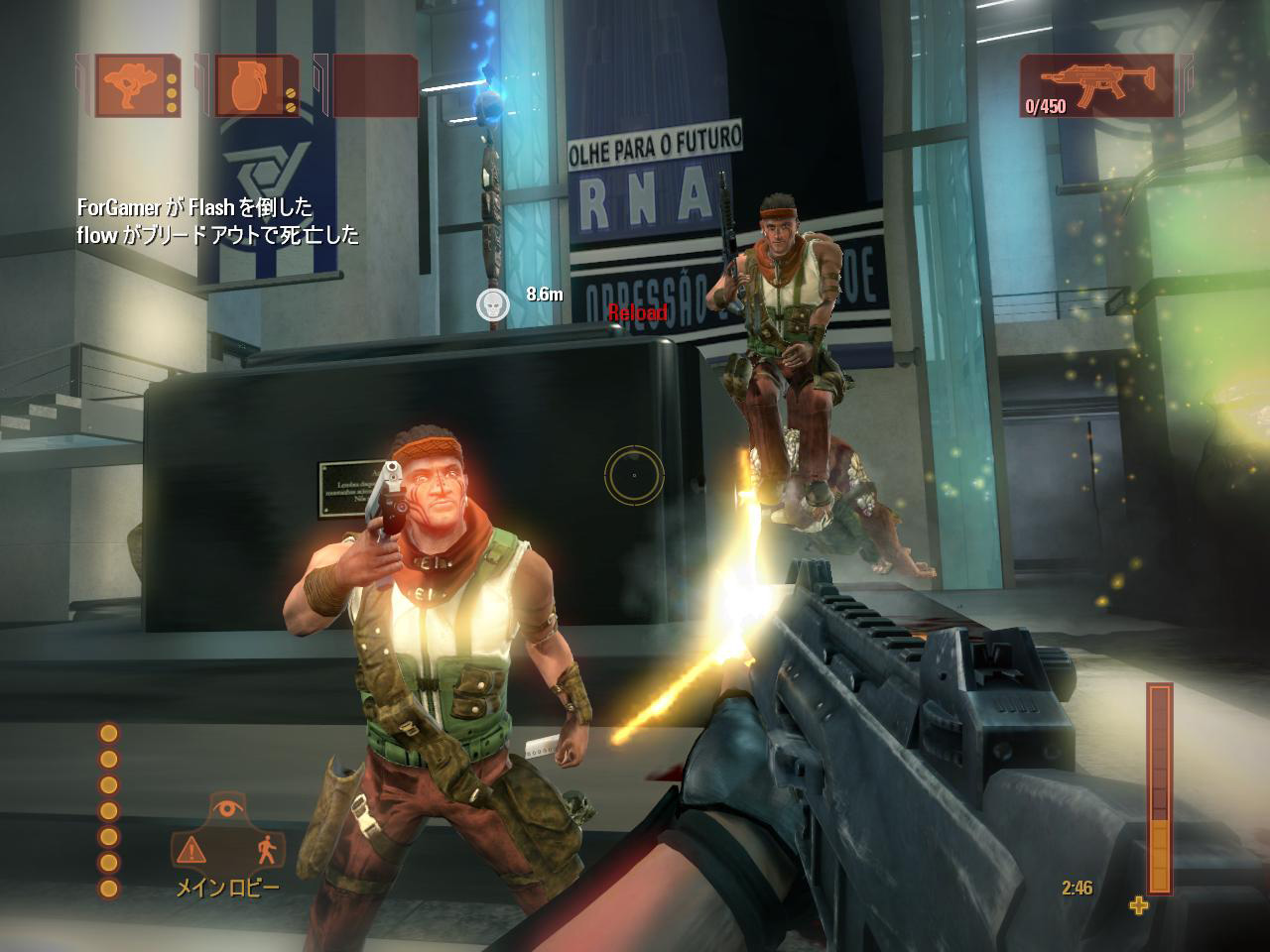 照準リングは移動すると広がり,しゃがむと小さくなって集弾率が上がるという設定であり,単純な撃ち合いにもそれなりの戦略を要求されるのだ。これら,デベロッパはヒットしたFPSを実に良く研究しているという印象を受ける仕事ぶりだ。