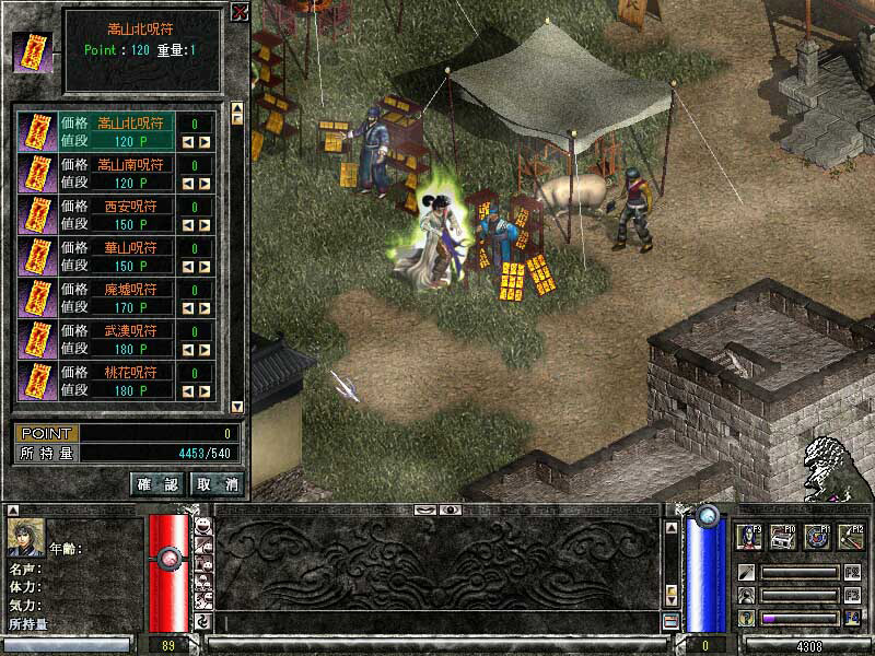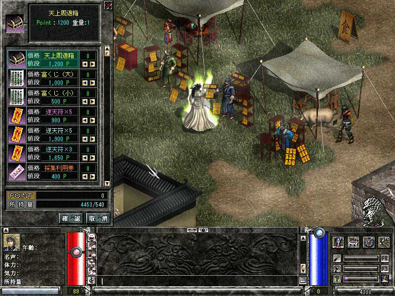 さまざまな種類のアイテムが販売されているが,なかでも注目は,「黄公」が売っている「天上周遊箱」。これは天上周遊符や逆天符,採集場利用券など5種類の呪符が複数個入っているセット商品。この中に入っている天上周遊符は,今回新たに追加されたアイテムで,30日間さまざまな土地を行き来できるという便利なもの。通常は街ごとに移動呪符を使うのだが,そのわずらわしさから解放されるのだ。ただし,日をまたぐと1日として計算されるため,例えば23時50分過ぎなどに使い始めるといったことは,避けたほうがいいだろう。