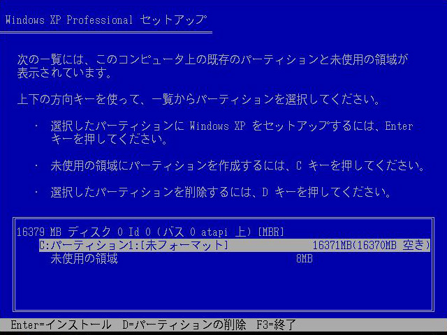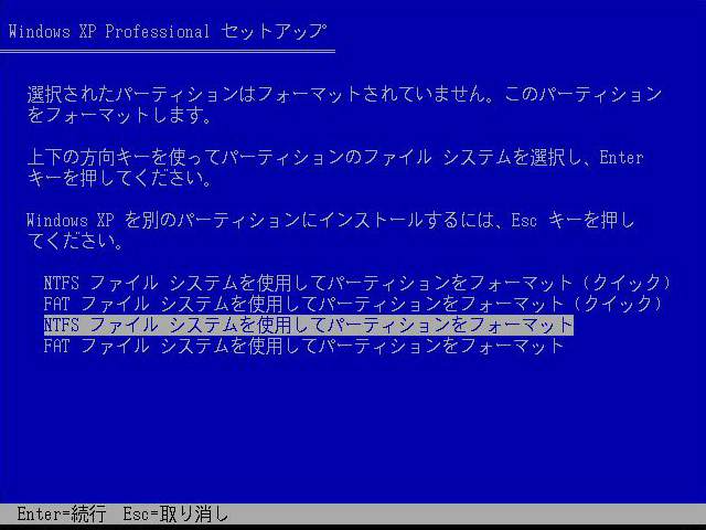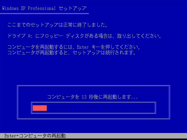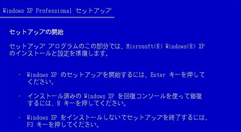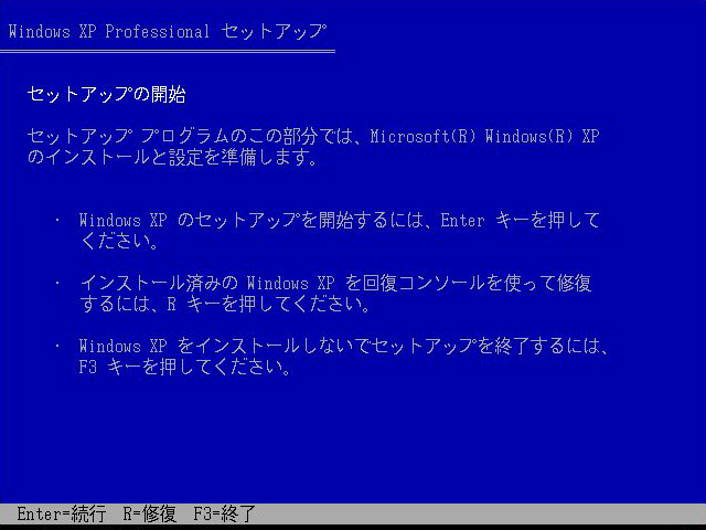 「Windows XPのセットアップを開始する」ので,この画面になったら[Enter]キーを押す