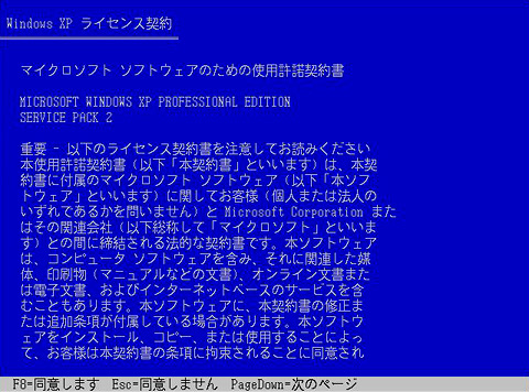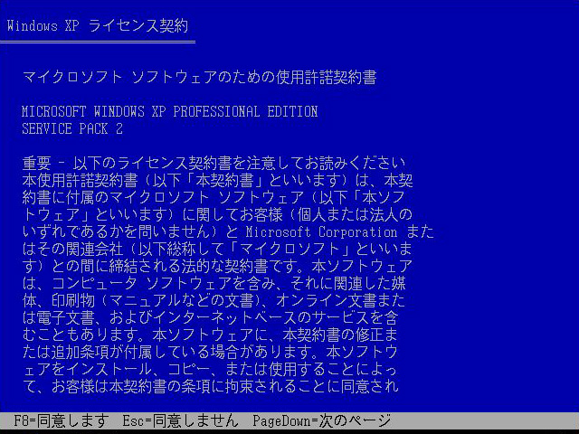 使用許諾契約書を読んで同意できたら,[F8]キーを押して次に進む