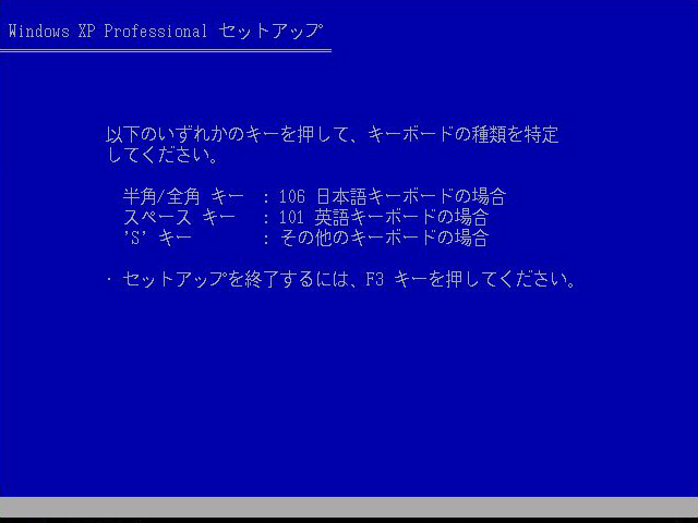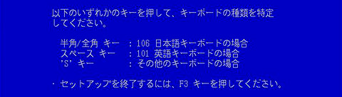 キーボードの選択画面になったら,日本語キーボードの場合[半角/全角]キーを押す。次に確認画面が出るので,合っていたら[Y]キーを押す
