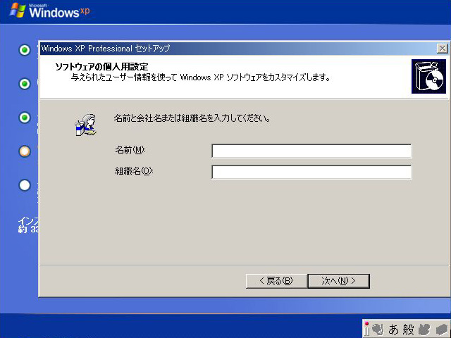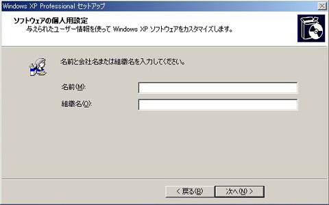 名前と組織名を入力し,次に進む。組織名は省略してもかまわない