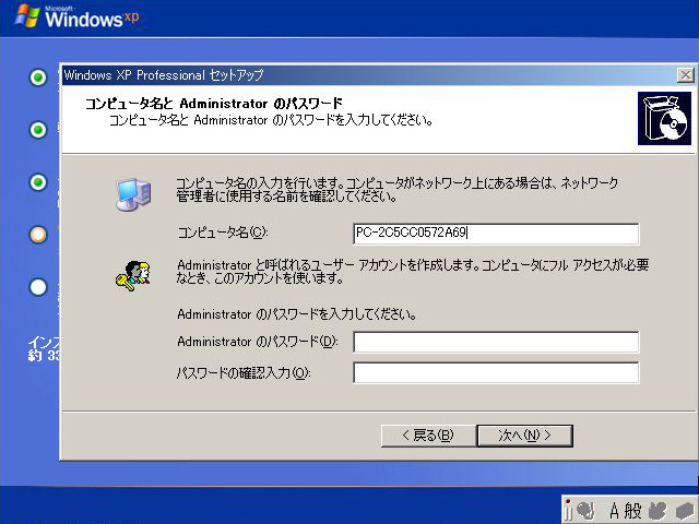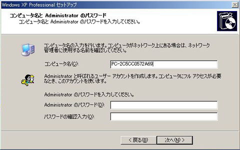 コンピュータ名とAdministratorのパスワードを入力する。パスワードは省略可能だが,セキュリティ上お勧めはできない
