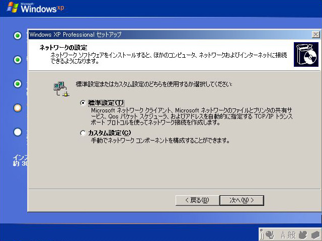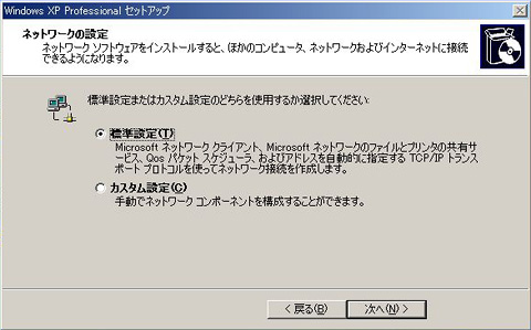 ネットワークの設定は,とくにカスタマイズしたい項目がない限り「標準設定(T)」を選べばいい。なお,マザーボードによってはこの項目が省略される場合もある