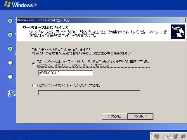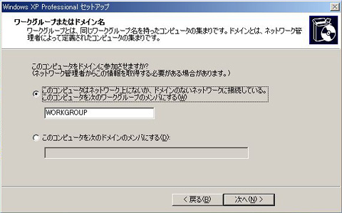ワークグループの設定は初期設定のままでもいい。とくに設定の必要がなければ,そのままで「次へ(N)」を押そう