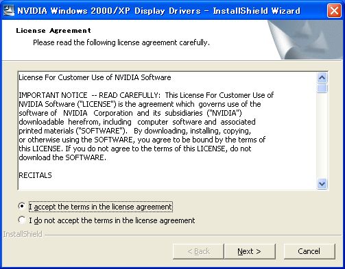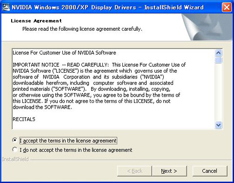 ForceWareのインストーラは,International版でも最初は英語で表示される。使用許諾書に同意したら,「I accept the terms in the licence agreement」を選択して「Next」を押す
