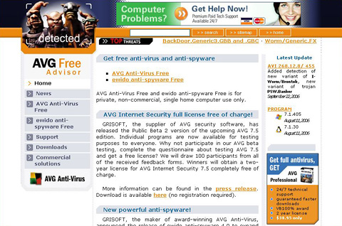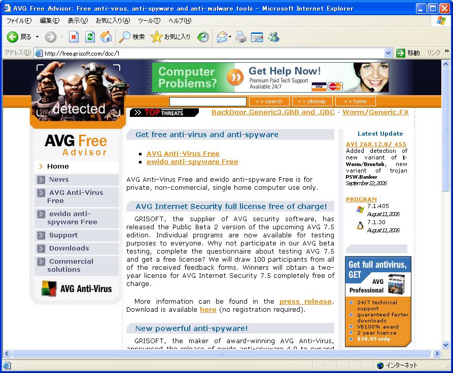 Windows XP SP2では,ウイルス対策ソフトの導入が必須だ。市販のウイルス対策ソフトを購入してインストールするか,「AVG Anti-Virus Free」(入手先:http://free.grisoft.com/)のような無償のウイルス対策ソフトをダウンロードして導入しておこう。