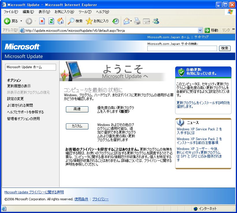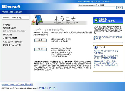 ウイルス対策ソフトをインストールしたら,次にWindows XPのセキュリティパッチをあてよう。Internet Explorerを起動し,ツールバーの「ツール」メニューから「Windows Update」を選択,Windows Updateを実行する。「優先度の高い更新プログラム」はすべて適用しておくようにしよう。