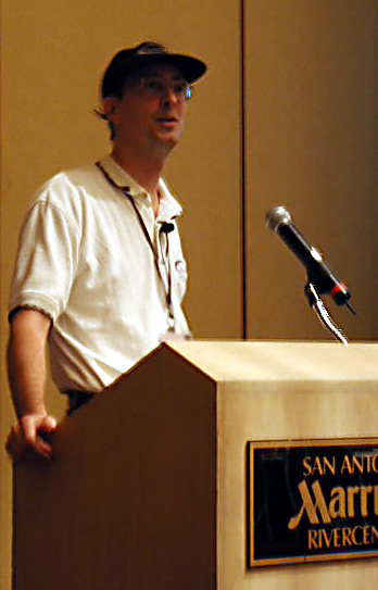 Siggraph 2002ではOpenGLに関するセミナーも多く行われており,7月24日にはOpenGLの制作者であるカート・アキレー(Kurt Akeley)氏が代表スピーチを行った。アキレー氏は,OpenGL
