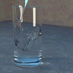 注いだときに水に混じる気泡が表現されていないが,まるで透明度の高いオイルを注ぎ込んでいるかのようなリアルな映像だ